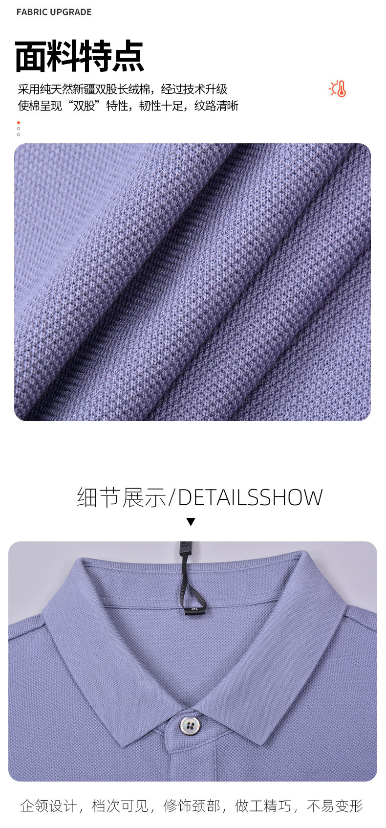 新疆長絨棉,以高端工藝織造而成,具有絲一般的手感與光澤,吸濕透氣,色度鮮麗、舒適、柔軟,不起球不退色不變形,光澤度極佳,穿起來舒適有型,充分體現了穿者的氣質與品位,同時展現企業的良好形象,適用于公司領導、高級職員、高端客戶禮品T恤、海外分機構、高爾夫球等高端活動的T恤定制。