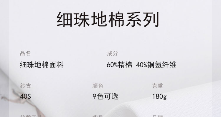 面料:60%精棉40%銅氨纖維